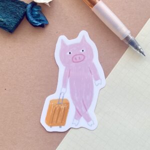 Traveler Pigは旅好きが高じて、編み出された旅行好きのブタ。旅行に関するイラストを描いたり、グッズを作ったりしています。