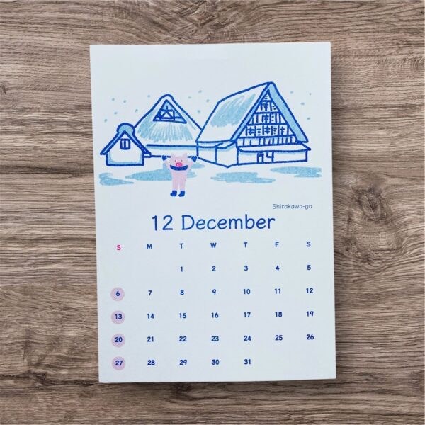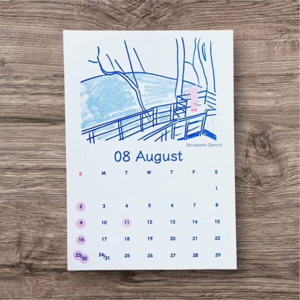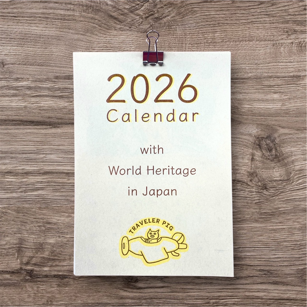 日本の世界遺産を巡る旅気分を楽しめる、2026年版カレンダー。落ち着いた風合いの紙とリトグラフ印刷で、使い終わった後もイラストを飾って楽しめます。